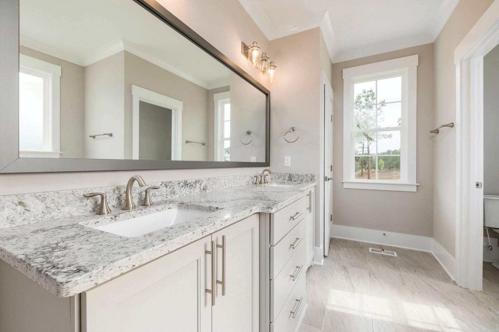 Craft the bathroom of your dreams with Craft Countertops’ stunning quartz bathroom countertops. Our quartz surfaces are not only durable but also aesthetically pleasing, offering a luxurious and elegant look. They are highly resistant to moisture and staining, making them a perfect choice for bathroom vanities.
