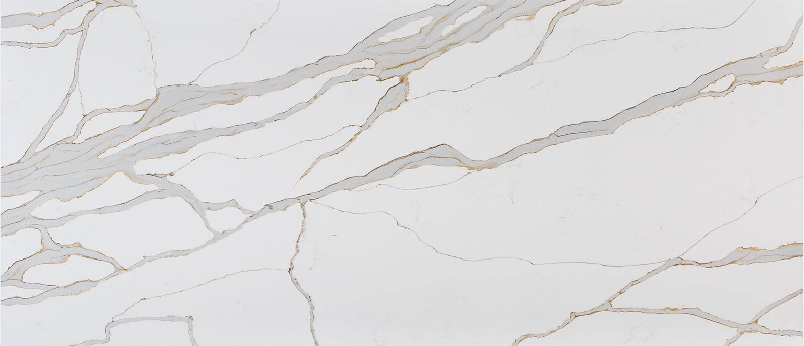 With incomparable color and beauty, Calacatta Solessio Quartz delivers high-end beauty at an affordable cost. This gorgeous quartz slab features a bright white background punctuated by thick veins that contain a cool, blue-grey filling with rust-colored veins are the perimeter –the most complex thick-vein Calacatta Designs on the market today. Durable, stain-resistant, and germ-resistant, this quartz is ideal for residential and commercial applications. Create jaw-dropping waterfall islands, countertops, bars, accent walls, backsplashes, and more with Calacatta Solessio.